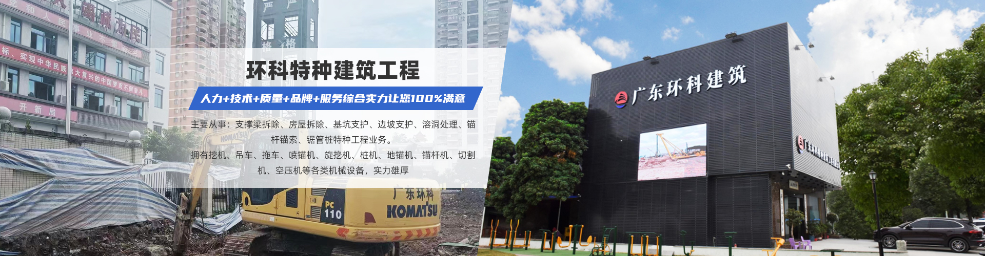 關于我們廣東環(huán)科特種建筑工程有限公司是一家承接基坑工程及勞務的中大型施工服務企業(yè),公司現有管理人員及施工人員超過400人,長年服務于大型基礎建設企業(yè)及國有建設單位。公司至目前經過十多年一步一個腳印,實實在在的做好每一個細節(jié),把每一個工程都當做精品去完成,實現了穩(wěn)步發(fā)展,積累了豐富的施工和管理經驗,在業(yè)界有著較高的有名度。公司主要從事:支撐梁拆除、房屋拆除、基坑支護、邊坡支護、溶洞處理、噴錨、錨桿錨索、鋸管樁等特種工程業(yè)務,擁有各類機設備(其中包含挖機、吊車、旋挖機、樁機、噴錨機、地錨機、錨桿機、拖車、工程運輸車、空壓機、繩鋸機、切割機、鋸機、風鎬及等機械設備),人才,服務于各大型企業(yè)。業(yè)務遍布廣東省,并逐步向周邊省市推進,施工足跡踏遍廣東省主要的各大城市和廣西、福建等地區(qū)。公司秉持“誠實守信和保證質量”的企業(yè)理念,本著“厚德務實、海納百川”的企業(yè)精神,以過硬的技術打造優(yōu)良的精品工程,為您提供高標...